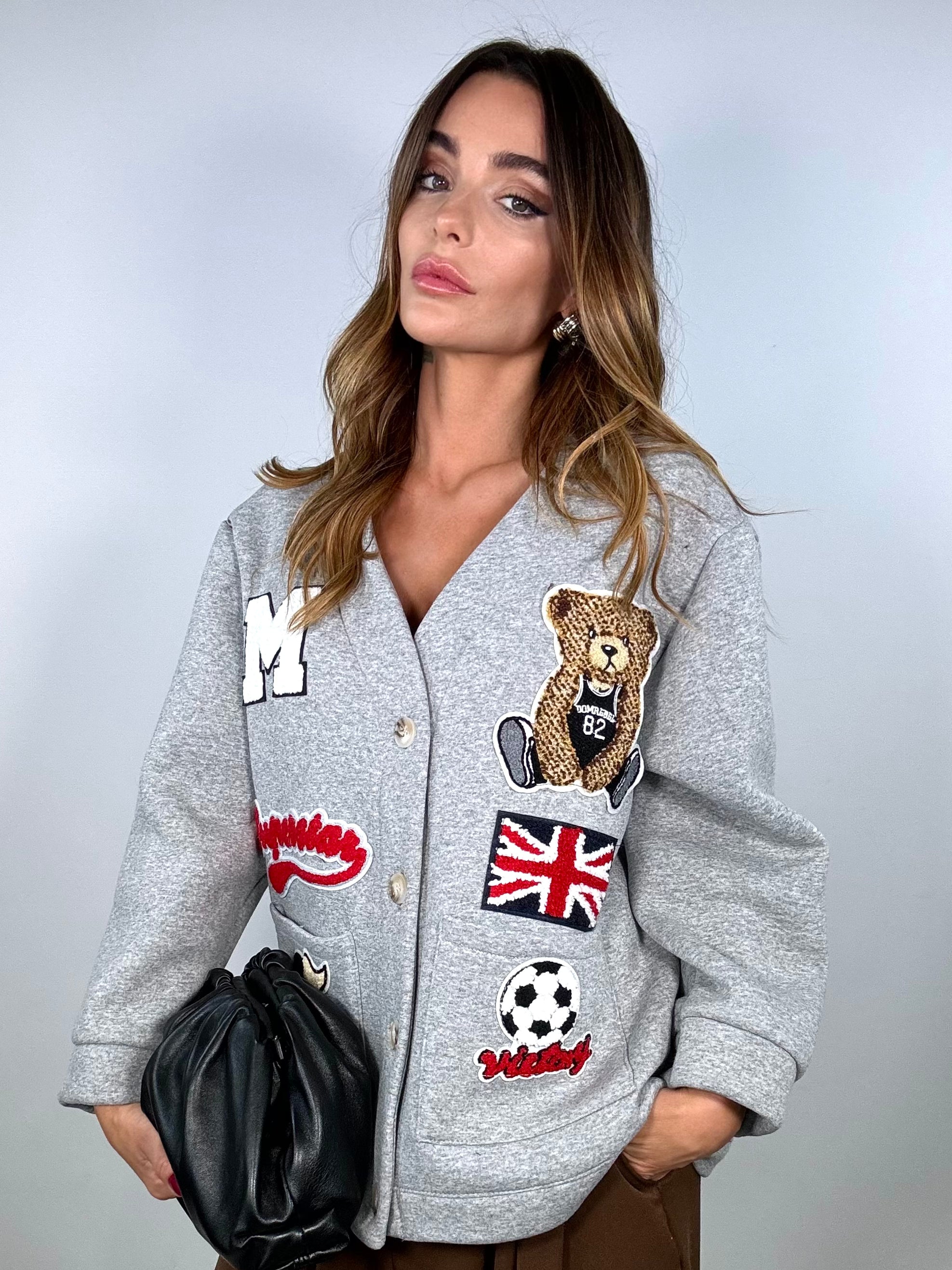 Chiodo Crop con Borchie e Text - Nero / Bianco